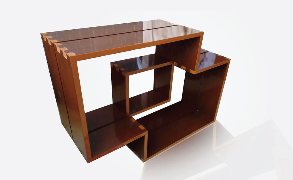I designed a multi-purpose shelf with a cuboid form having an interesting linear profile and assembled with traditional joineries like half lap, finger lap and dovetail joint. Made 1:1 model of the same.